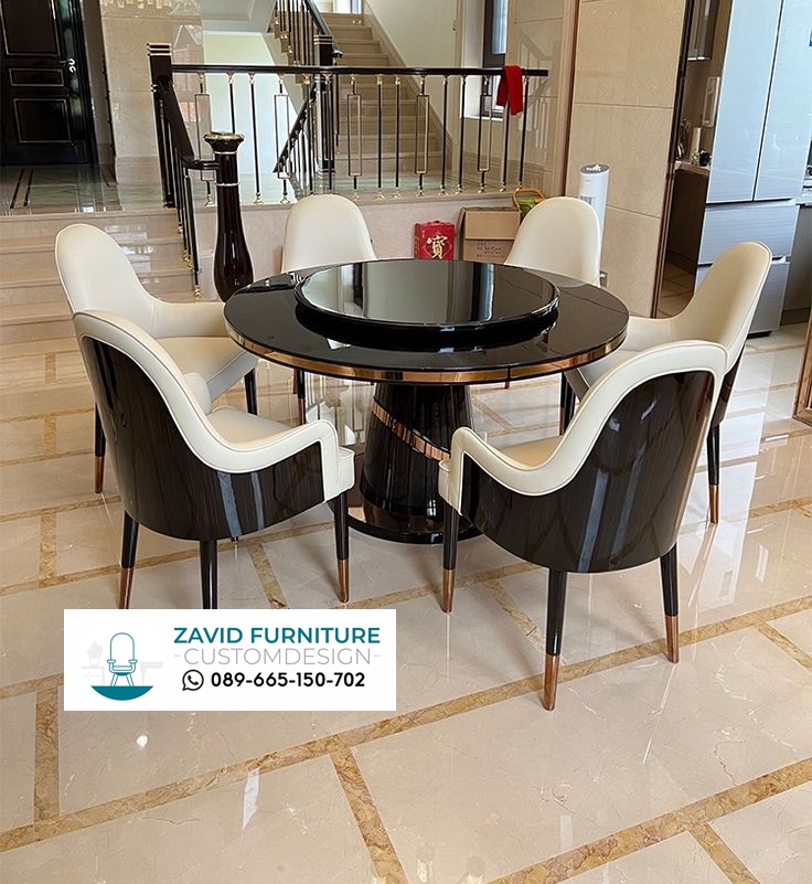 1. meja makan dengan desain bulat dapat memberikan kesan yang lebih Mewah