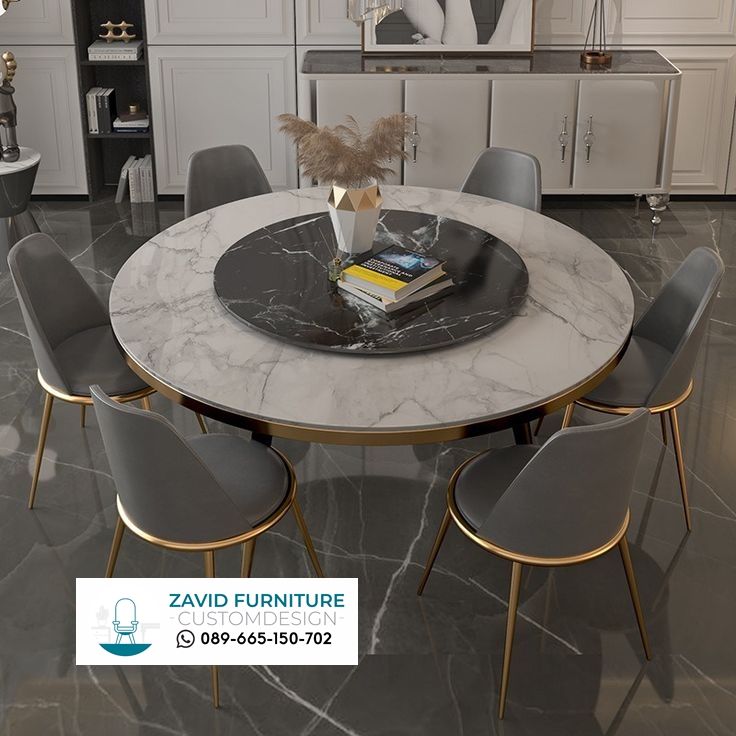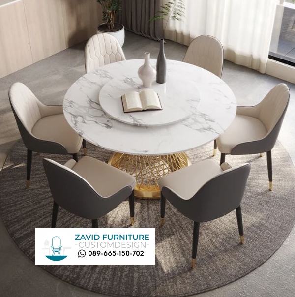 Meja makan marmer bulat untuk 6 kursi