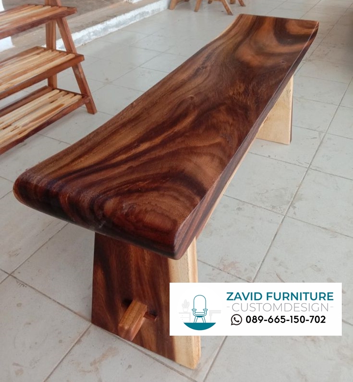 bangku panjang kayu dibuat dari kayu solid seperti jati, trembesi, atau mahoni, bangku ini memiliki kekuatan yang mampu menopang beban berat dan bertahan bertahun-tahun. Serat kayu yang khas dan warna natural memberikan kesan hangat dan elegan cocok untuk berbagai tema interior, dari minimalis hingga rustic.
